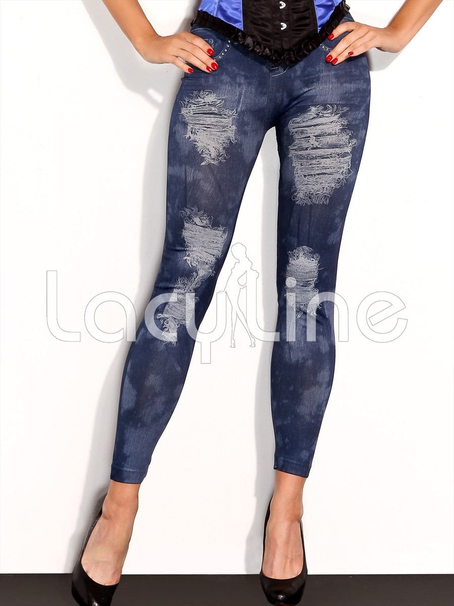 Stretch leggings with faux jeans look and rhinestones.